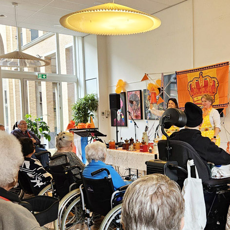 Op Koningsdag gaven De Zingende Koffiemeisjes een interactieve muziekvoorstelling op locatie Wervershof en locatie Davidshof. Herkenning, aandacht, interactie en meezingen zijn belangrijke onderdelen van het optreden van de Zingende Koffiemeisjes. De voorstelling is mede mogelijk gemaakt door Stichting Vrienden St. Pieters en Bloklands Gasthuis.